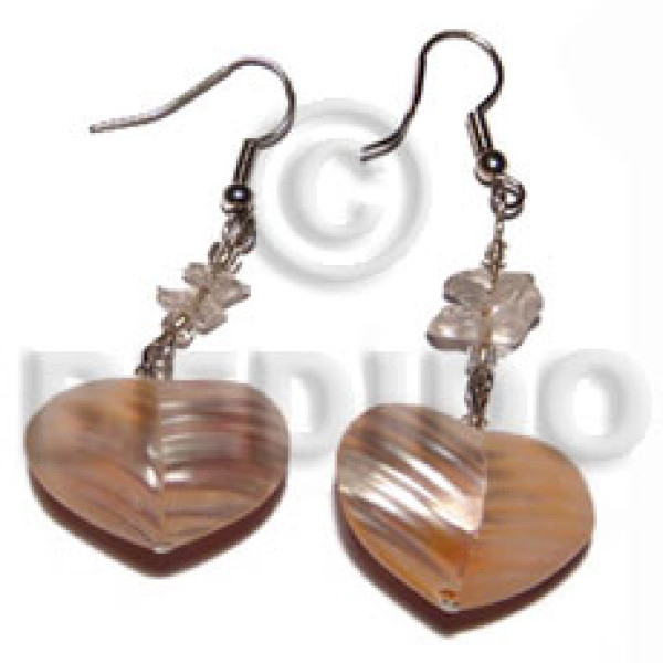 dangling rounded back to back heart 25mm shell/ orange tones..
