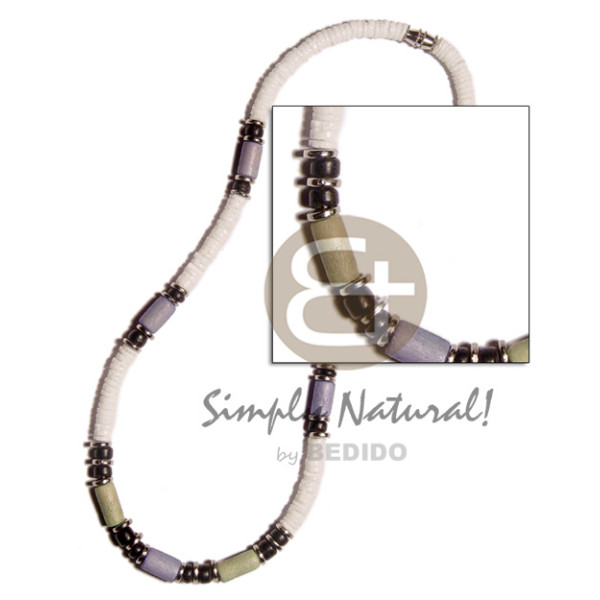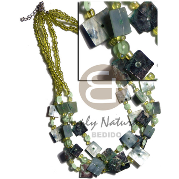 sq. cut white rose 4-5 mm aqua blue/bright green coco heishe alternate..