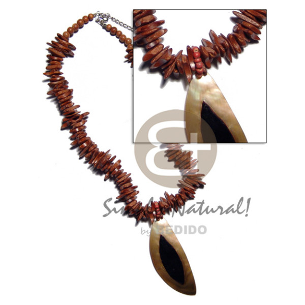 3 layer black 2-3mm coco heishe blacklip shell tusks & wood beads accent..