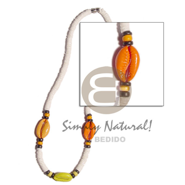 3 rows twisted 7-8mm coco heishe tiger nat. wood beads combination accent and round 80mm kabibe shel..