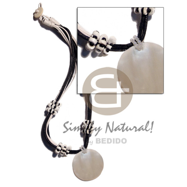 45mm round MOP shell pendant on 2 layers 2-3mm coco heishe/2layers wax cord/2layers cut glass beads ..