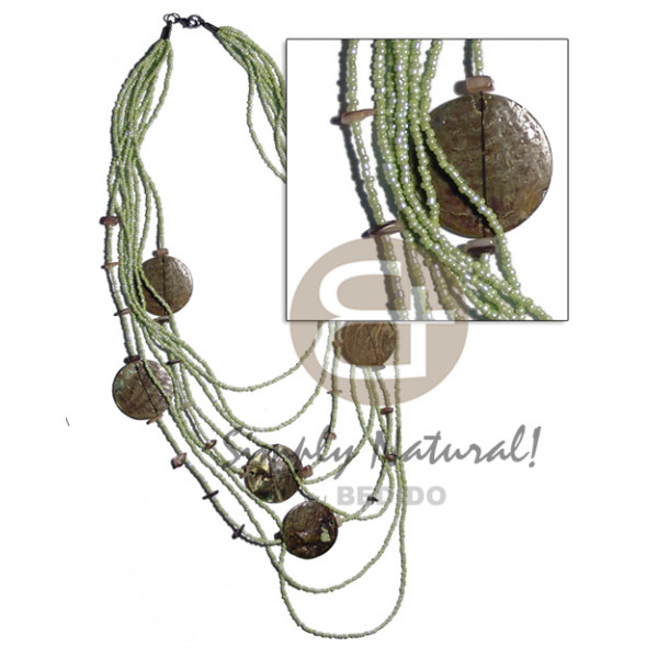 5 rows graduated multilayered lime green glass beads square cut hammershell and 35mm round hammer..