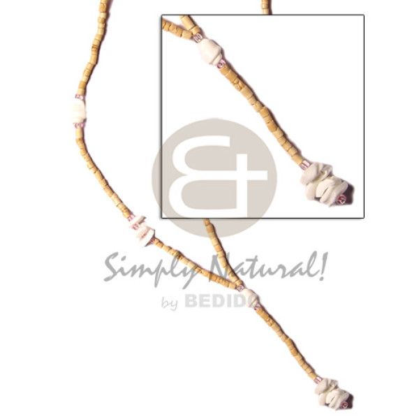 2-3 nat brown coco heishe w. sq. cut luhuanus and 2-3mm hammershell nat. alt...