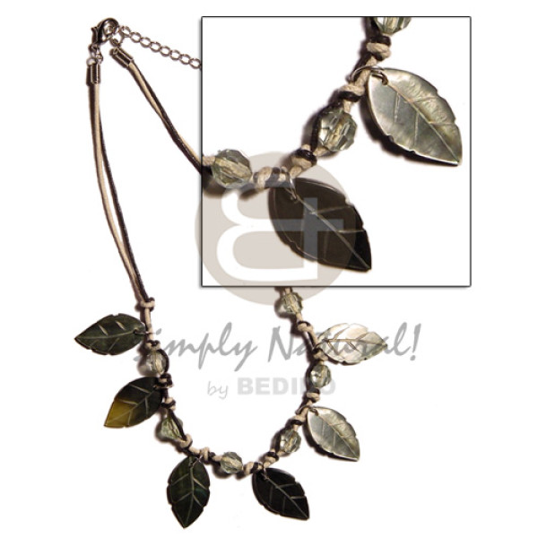wax cord coco Pokalet/wood beads/bamboo 15mm MOP floral pendant..