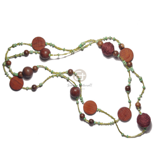 3 layers 2-3mm coco heishe,glass beads wax cod in pink tones 5 pcs. 15mm round brownlip accent..