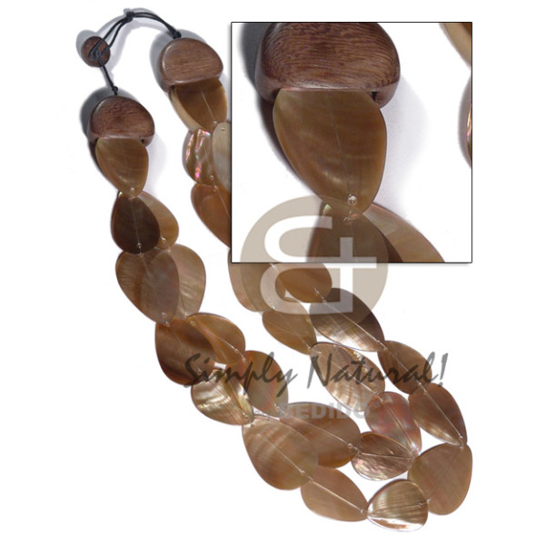 2 graduated layers of 30 pcs. overlapping brownlip teardrop in 3 sizes- 38mmx28mm / 34mmx23mm/30mmx2..