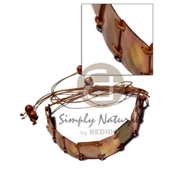 9 pcs. 20mmx20mm square brownlip choker on 24 in. adjustable wax cord wood beads..