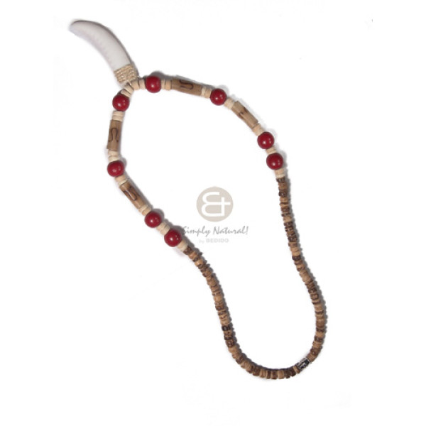 4-5mm coco Pokalet tiger/bleach bamboo tube burning and 10mm round wood beads in red combination an..