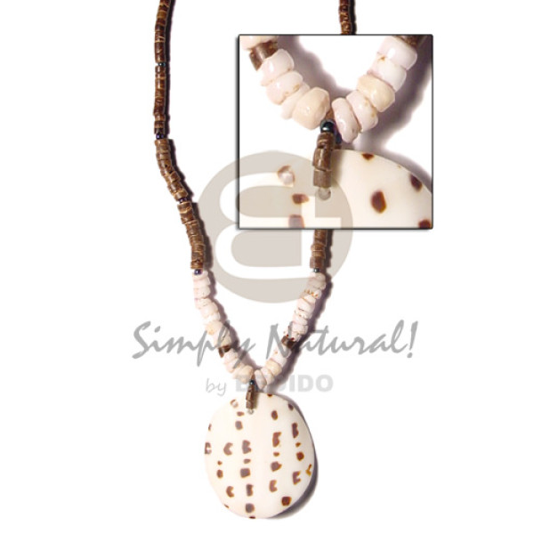 4-5 coco heishe brown/rainbow beads/ tiger puka round cunos pendant..