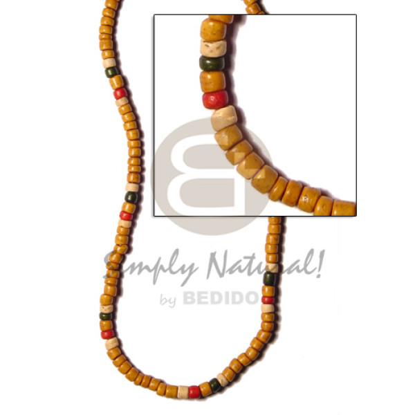 4-5mm coco Pokalet nat. tiger palmwood cubes and buri seed beads combination / 16in/ barrel lock..