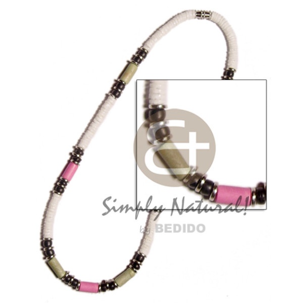 4-5mm coco Pokalet natural 8mm coco Pokalet bleach & greywood beads accent..