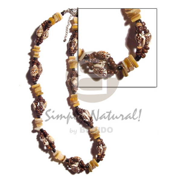 35mm carved blacklip shell brass wire,buri seed,brownlip heishe and square cut in wax cord..