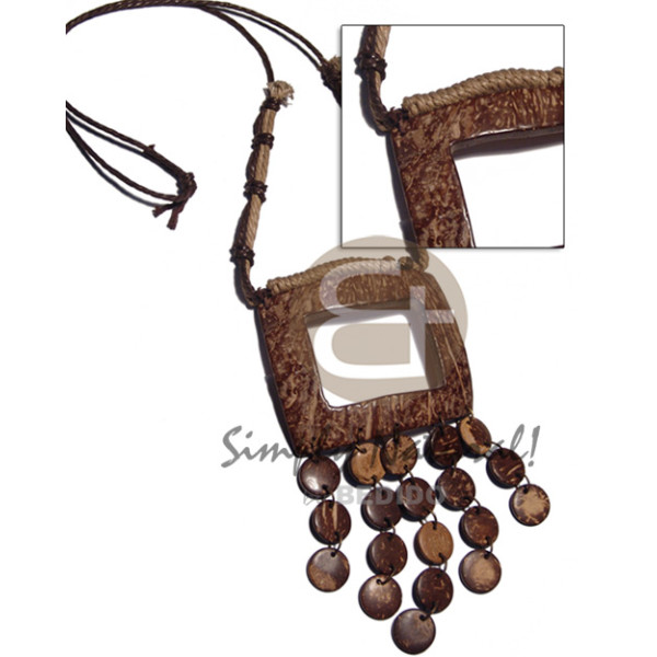 brown/beige wax knotted wax cord 75mmx60mm rectangular coco nat. brown tassled pendant dangling 15m..