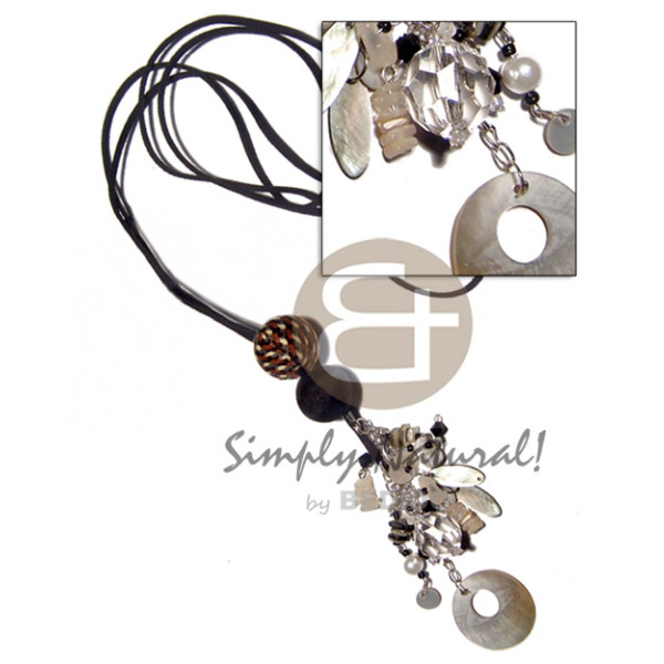 15mm buffed white wood beads rubber seed and 20mm wrapped in abaca wood beads combination in double..