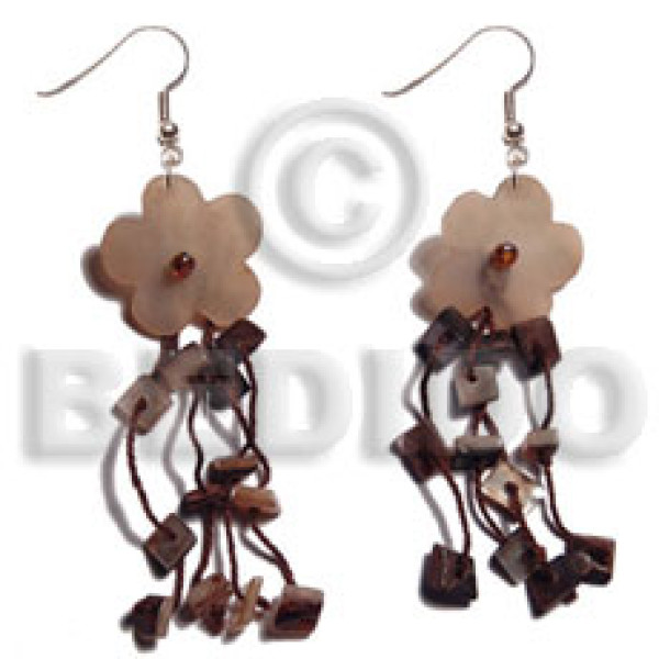 5 layers 2-3mm black coco heishe black wood beads combination and dangling brown 5 pcs. capiz shel..