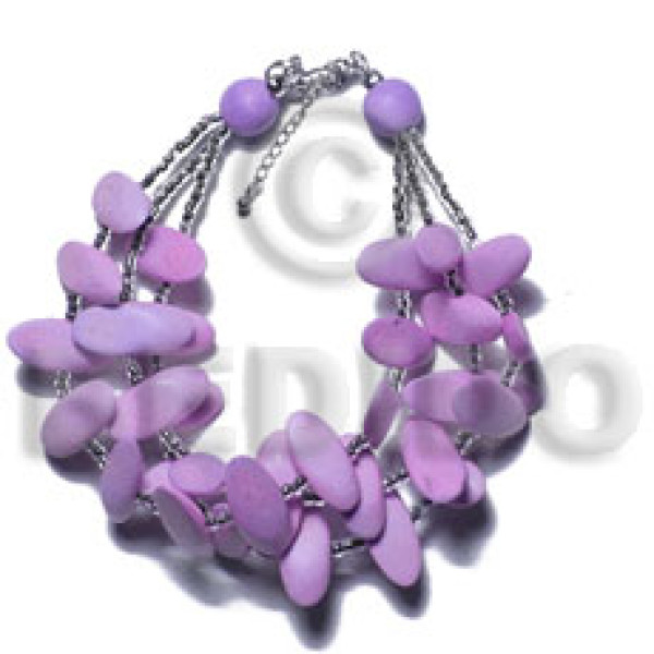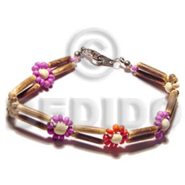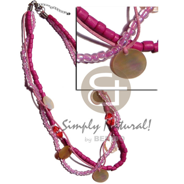 2 rows pink wood tube matching 4-5mm coco Pokalet. & pink rose elastic bracelet..