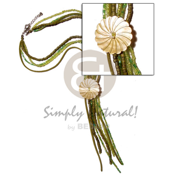 4-5mm coco Pokalet. nat. brown handpainted 15mm robles round wood beads & white rose shell accent /..