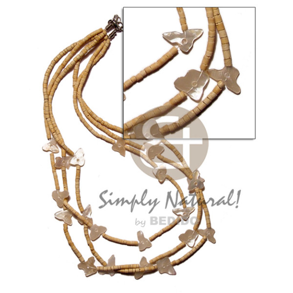 65mm round MOP wood ricebeads, shell rings, acrylic nuggets combination neckline / 20in..
