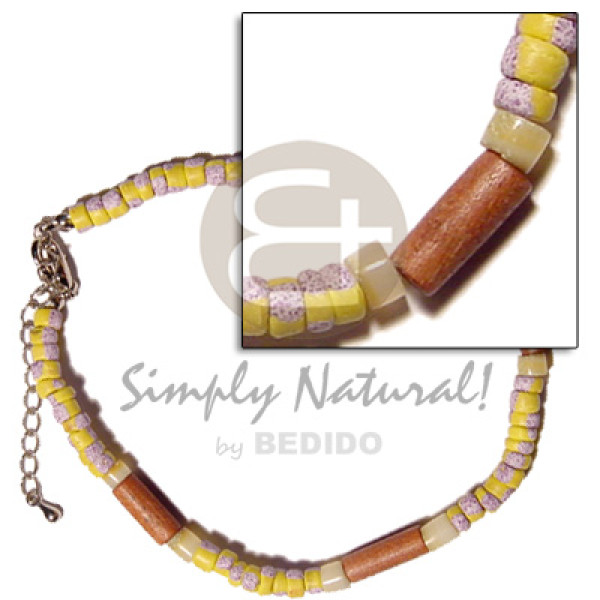 4-5mm nat. white coco Pokalet. splashing/nat brown alt. wood tube & pearl beads combination..