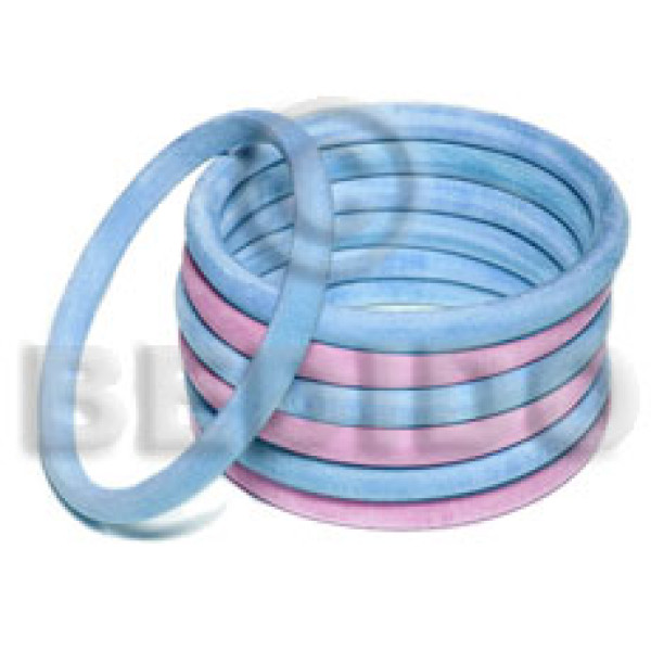 elastic 2 color combination/light blue & lavender wood stick bangle clear coat finish / 10mmx65mm..