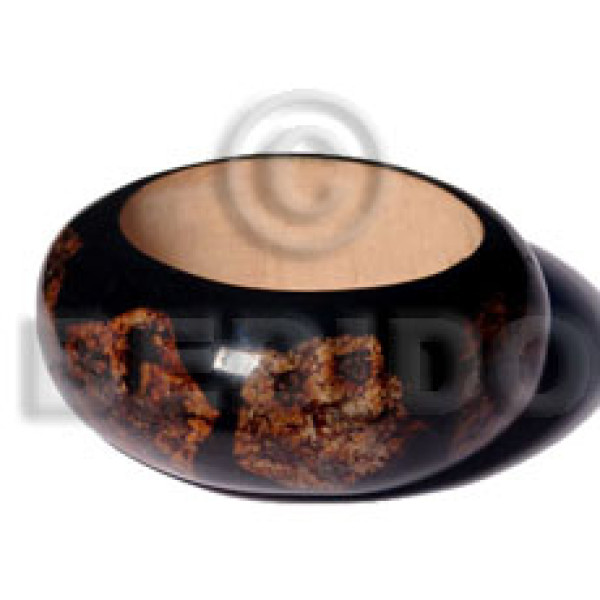 chunky / angelina / stained and clear coated high gloss polished saucer nat. wood bangle / ht= 20mm..