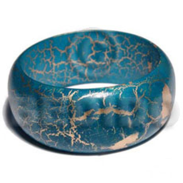 nat. wood bangle in ocean blue and gold crackle painting ht=30mm thickness=8mm inner diameter=65mm..