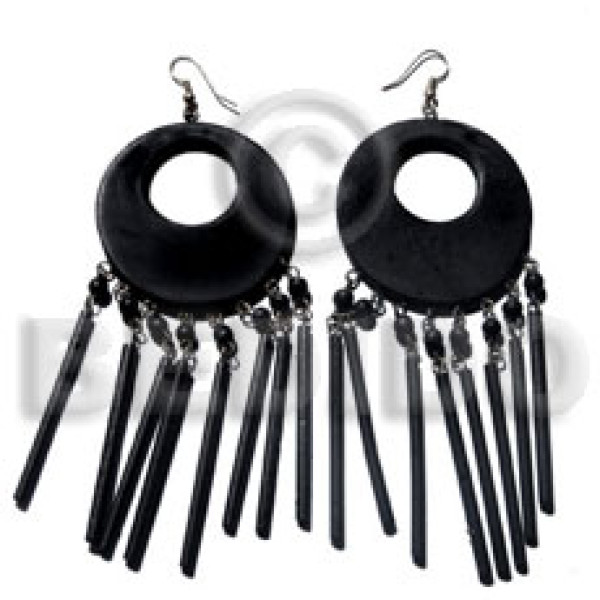 dangling 50mm round nat. black wood 20mm inner hole and dangling 45mm 7pcs. rounded wood sticks..