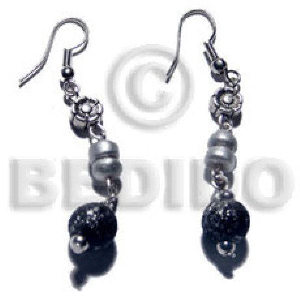 dangling wood beads and 4-5mm coco Pokalet in silver tones..