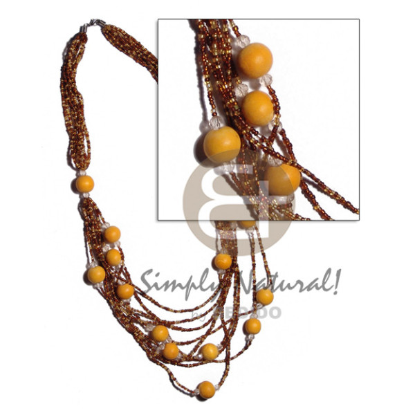 5 rows graduated multilayered golden brown glass beads 20mm round wood beads/pearl accent / yell..