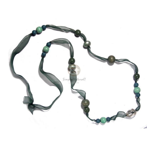 8mm/12mm/15mm round wood beads crystal in organza ribbon / olive green tones / 36in..