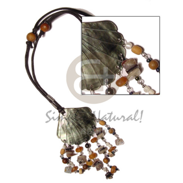 55mm textured marble brown heart nat. wood pendant nito side trimmings / holder..