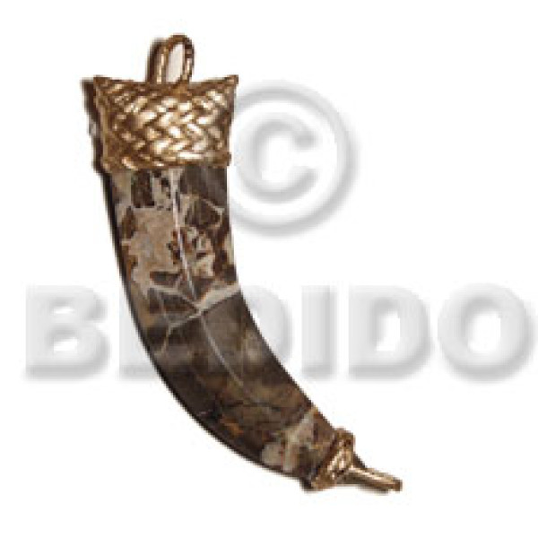 textured marbled brown nat. wood fang pendant 70mmx20mm nito holder..