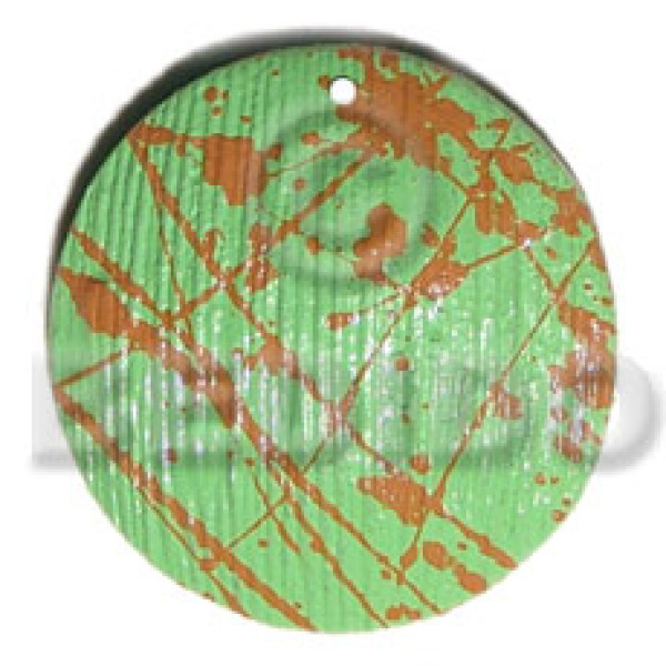 textured marbled light green round ring 50mm nat. wood pendant 20mm center hole..
